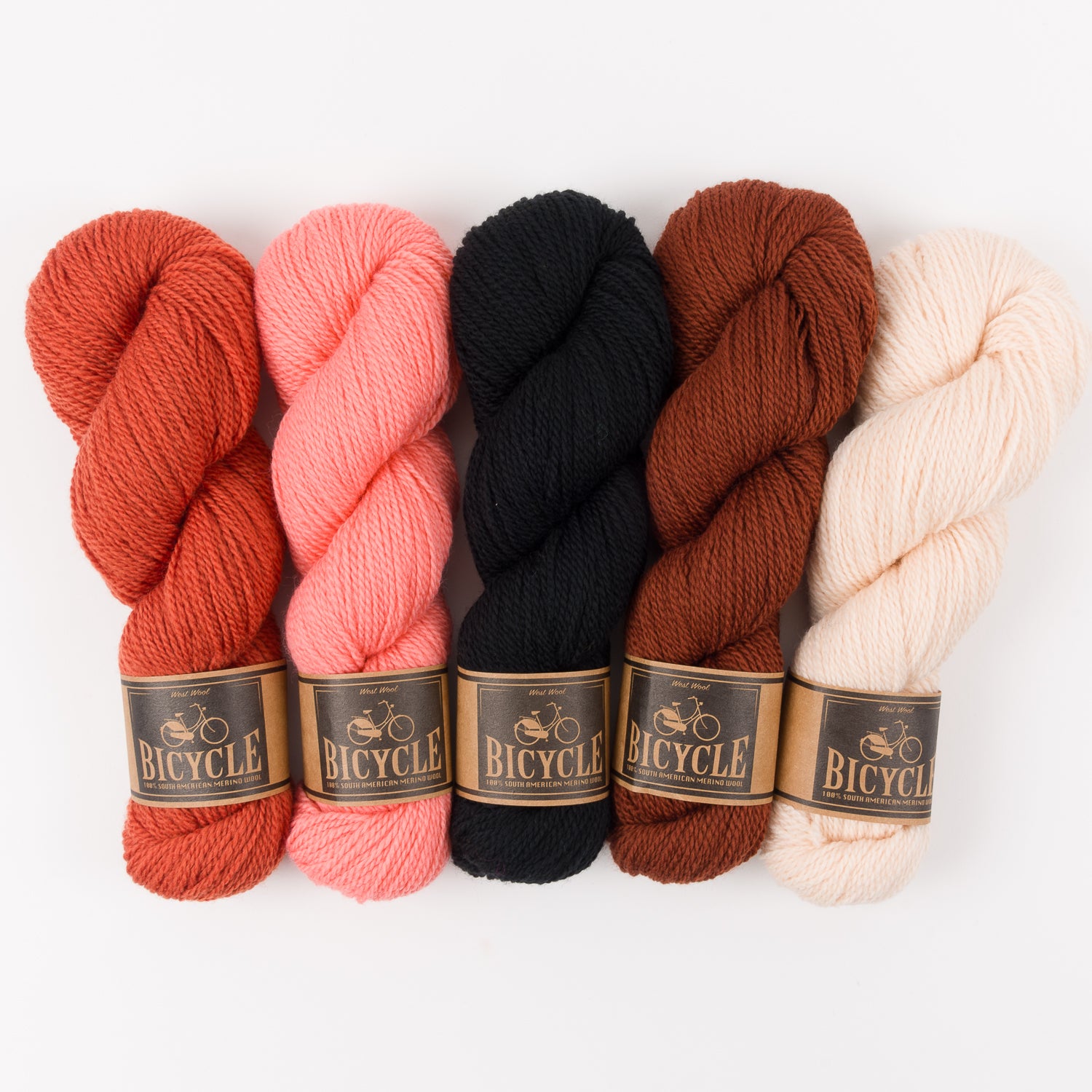 This beautiful West Wool kit contains ten skeins of fingering weight yarn. If you're looking for project inspiration, it will work up perfectly for any Westknits shawls.