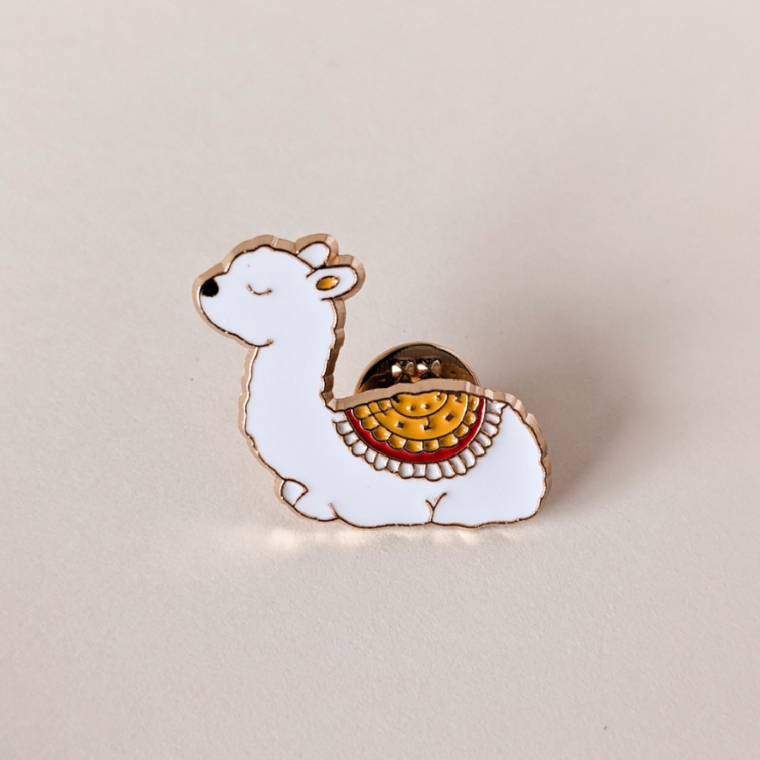 This whimsical white llama pin from Hello Kim will add a pop of fun to anything you want!