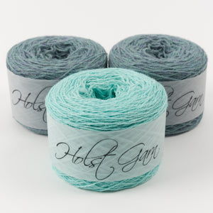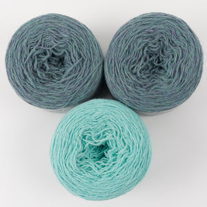 This gorgeous kit from Holst Garn contains six cakes of fingering weight yarn in two beautiful colours. If you need some inspiration, they can be used to knit any of these Westknits shawls.